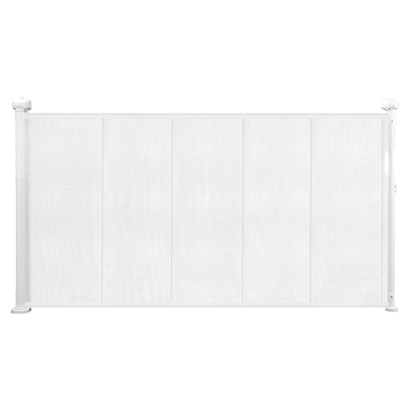 Tämä sisään vedettävä turvaporte antaa käytännöllisen ratkaisun portaikkojen, oviaukkojen, käytävien ja leikkihuoneiden rajaamiseen lapsille ja lemmikeille. Hengittävä verkkopaneeli ja vahvistettu lasikuiturunko pitävät rakenteen kevyenä mutta tukevana, ja portti rullautuu sivuun, kun sitä ei tarvita.