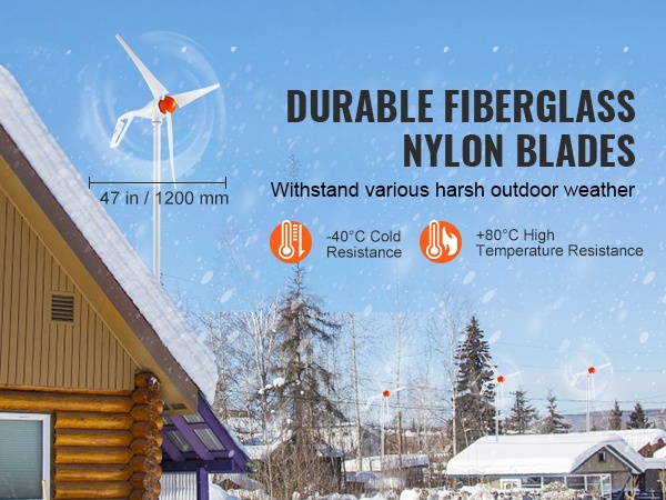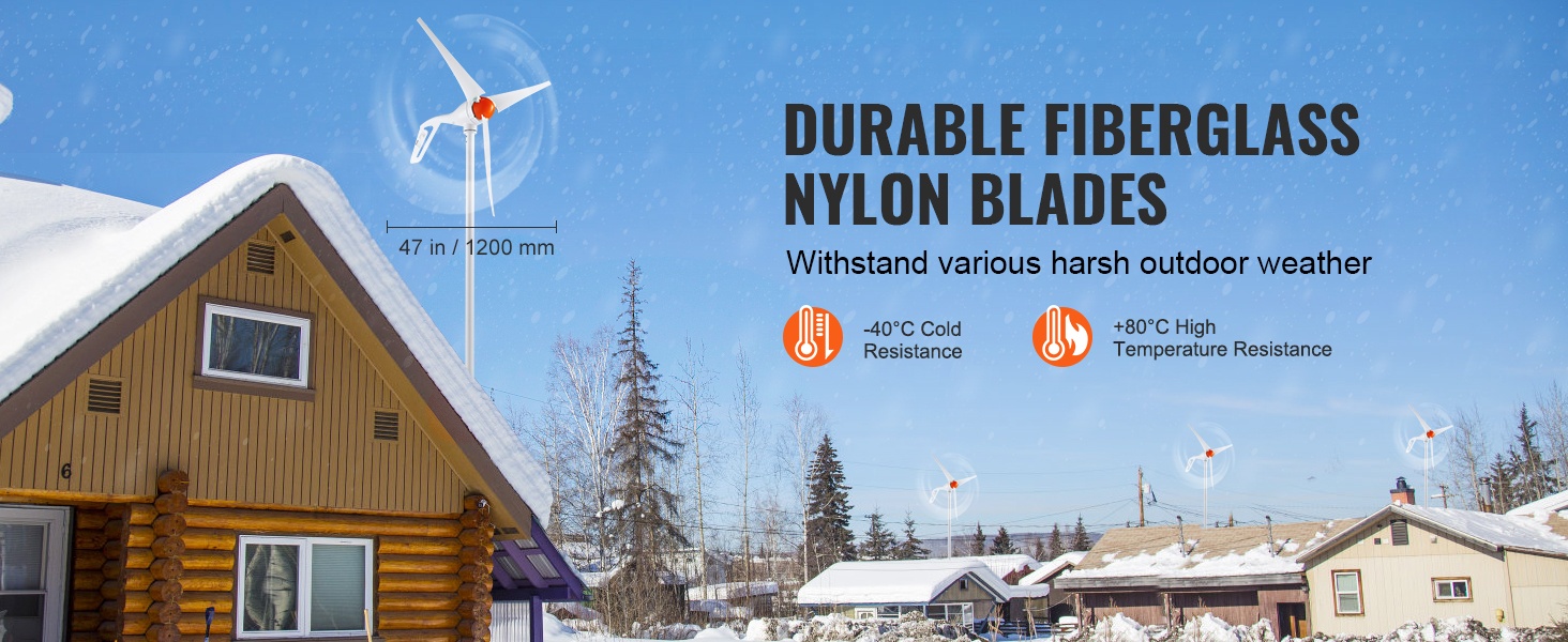 Tuuliturbiinin lavat on valmistettu vahvistetusta lasikuitunylonista, joka kestää hyvin sekä kylmää että kuumaa. Käyttölämpötila-alue on -40°C – 80°C, joten lavat eivät helposti jäädy tai muutu muodoltaan lämpötilanvaihteluissa.