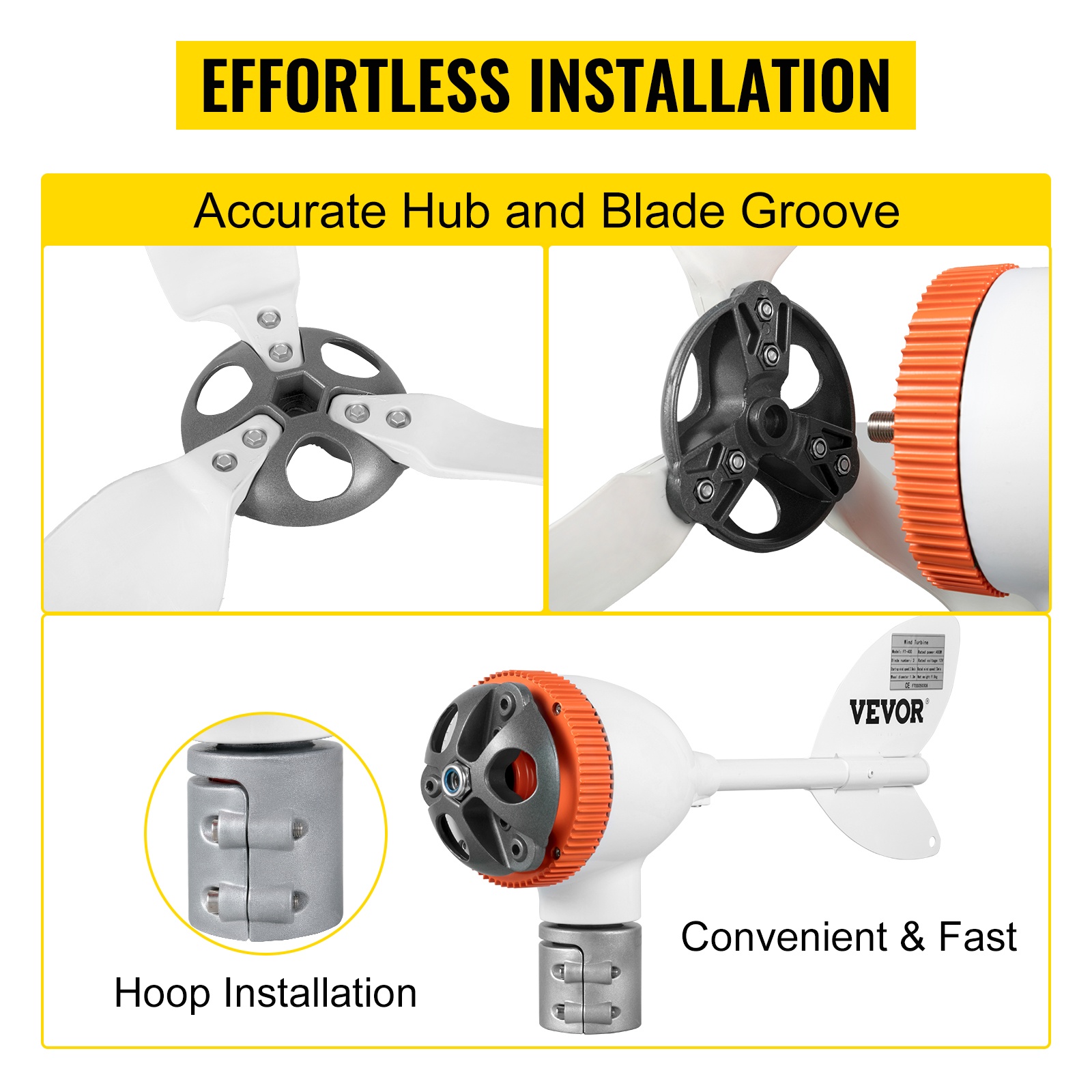 Tuuligeneraattori kiinnitetään asennusvanteella, ja siinä on kaksipuolinen laparakenne sekä tarkasti istuva napa ja lapaurat. Päivitetty rakenne nopeuttaa kokoamista ja vähentää virheellisen asennuksen riskiä laippakiinnitykseen verrattuna.
