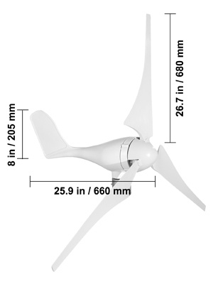 Tämä 12V 400W tuuliturbiinisarja sisältää 3-kuitulapaisen generaattorin ja lataussäätimen. Kolmivaiheinen kestomagneettimoottori yhdistettynä laadukkaisiin lapoihin mahdollistaa alhaisen käynnistystuulen nopeuden, pienen värinän ja hiljaisen käynnin sekä parantaa tuulienergian hyödyntämistä ja vuotuista energiantuottoa. Sopii esimerkiksi kotiin, valvontakäyttöön, veneisiin ja muihin kohteisiin, joissa tarvitaan lisävirtaa.