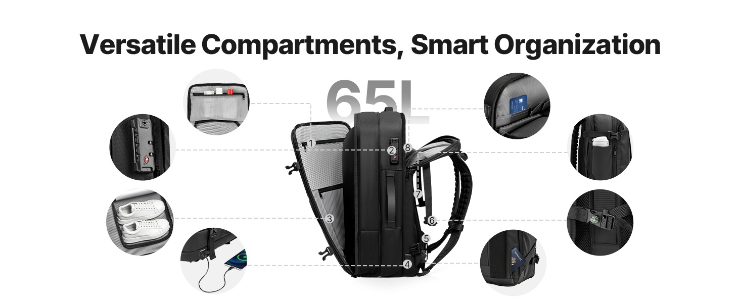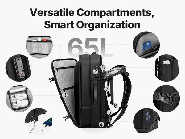 Tyhjiömatkareppu 35L auttaa pakkaamaan matkatavarat kompaktisti ja siististi. Mukana tulee pieni tyhjiöpumppu, jonka avulla puristat vaatteet ja muut pehmeät tavarat helposti kasaan. Useat lokerot ja taskut, kuten kuiva/märkä-tila, eristetty tasku ja piilotettu varkaussuoja-tasku, pitävät tavarat järjestyksessä niin työmatkoilla, viikonloppureissuilla kuin pidemmilläkin matkoilla.