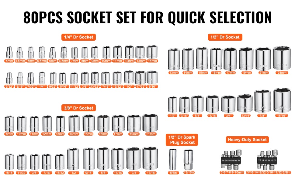 - Hylsyt 1/4", 3/8" ja 1/2" vedolle (SAE- ja metrimitat)