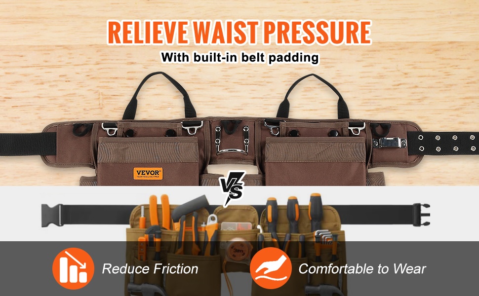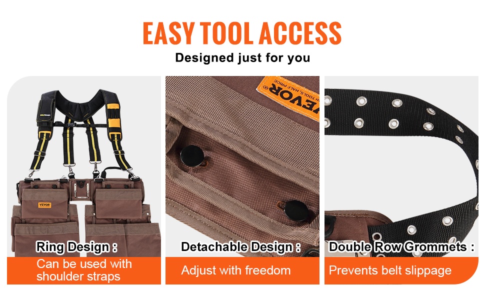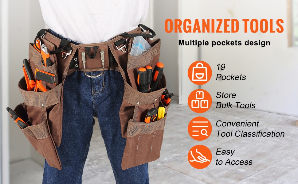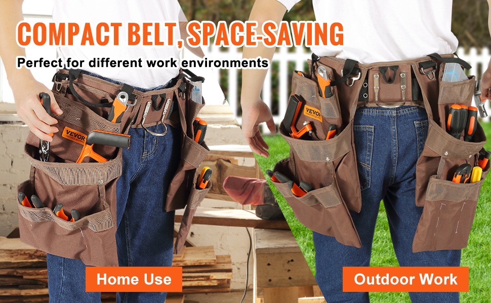 Kompakti työkaluvyö kulkee kätevästi mukanasi, joten erillistä työkalulaatikkoa ei aina tarvita. Kun ripustat vyön vyötäröllesi, työkalut pysyvät koko ajan lähellä ja liikkuminen työmaalla on vaivatonta.