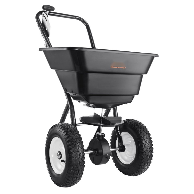 Tässä sirottelijassa on tukeva 80 lbs kantokyky ja tilava 25.5L säiliö. Voit käyttää sitä läpi vuodenaikojen – kylvöön keväällä, lannoitukseen kesällä, rikkakasvien torjuntaan syksyllä ja suolaukseen talvella.