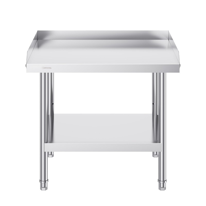 Pöydän taso, hyllyt ja jalat ovat SUS201-ruostumatonta terästä, joka tarjoaa hyvän korroosionkestävyyden ja siistin pinnan. NSF-sertifioitu rakenne täyttää tiukat hygienia- ja turvallisuusvaatimukset julkisissa tiloissa ja ammattikeittiöissä.