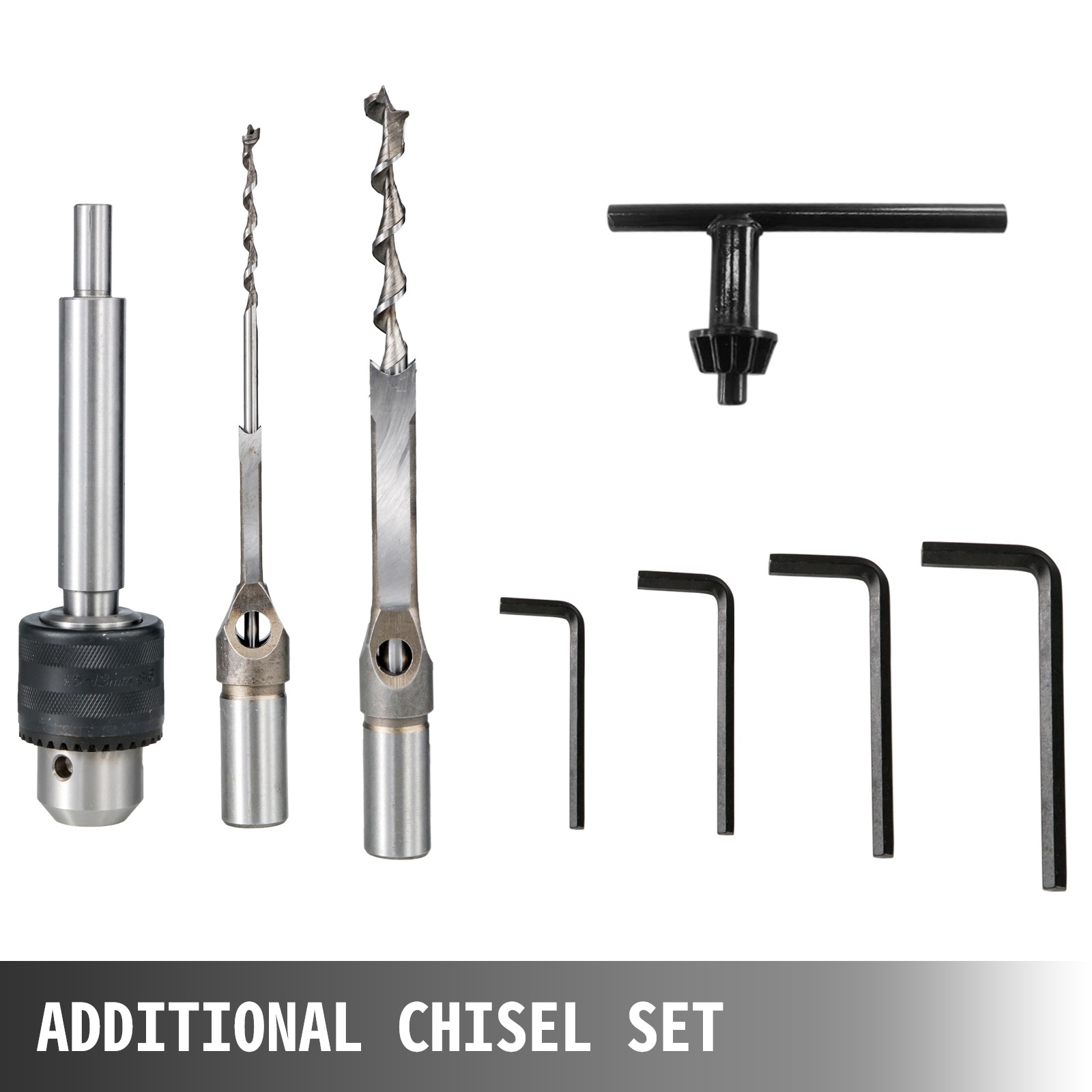 Pakkaukseen sisältyy 13mm poraistukka, jonka avulla pora pysyy vakaasti, 3/8 tenon-työkalu, taltanpidin, poraistukan asennusavain sekä neljä kuusiokoloavainta.