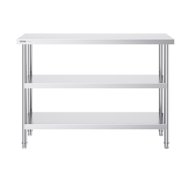 Työtaso ruostumattomasta teräksestä 610 x 1219 x 914 mm ammattikeittiöön säädettävällä hyllyllä