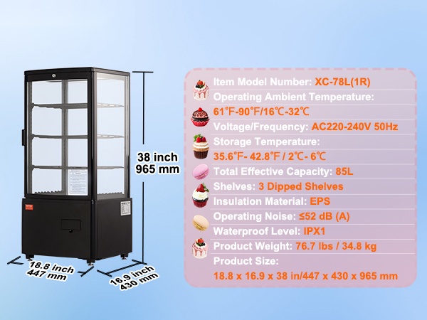 Tämä työtasolle sijoitettava kylmävitriini hyödyntää tilan tehokkaasti ja sopii esimerkiksi kassatiskeille, ikkunanäyttelyihin tai kaappien päälle. Kolme tasoa tarjoavat hyvin näkyvyyttä leivonnaisille, juomille ja muille kylmäsäilytystä vaativille tuotteille.