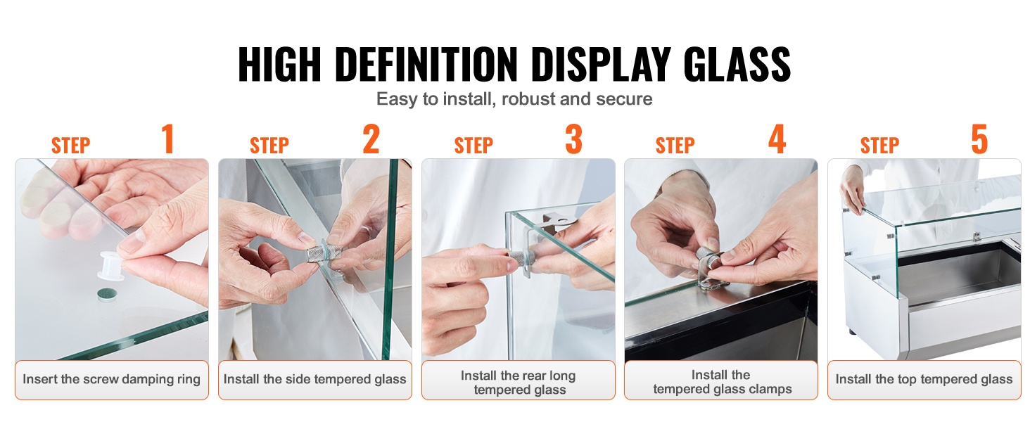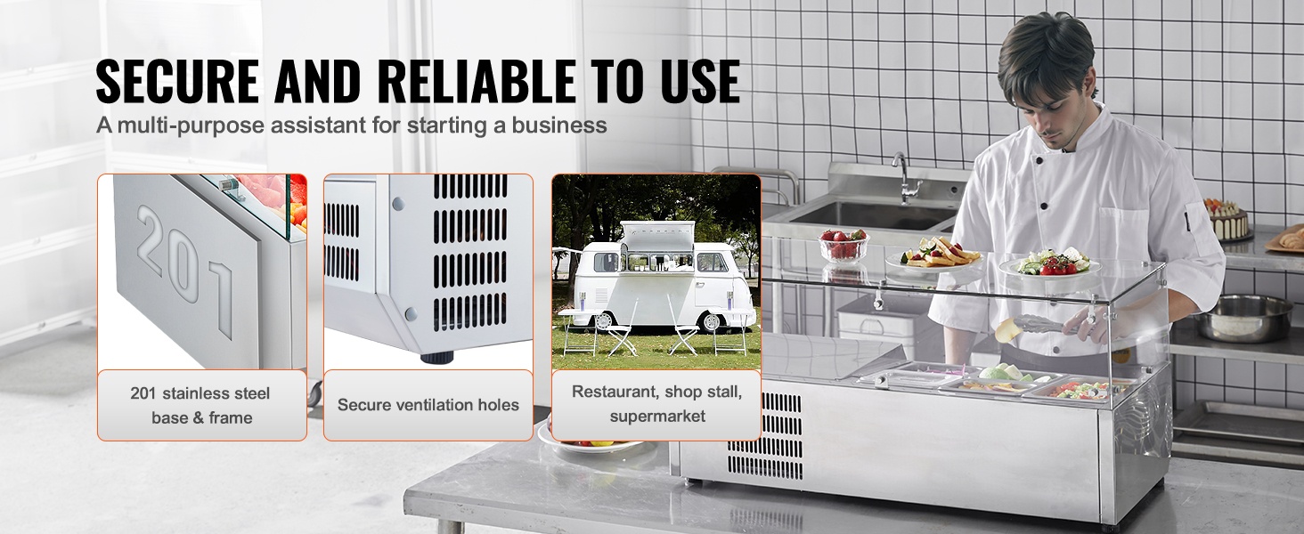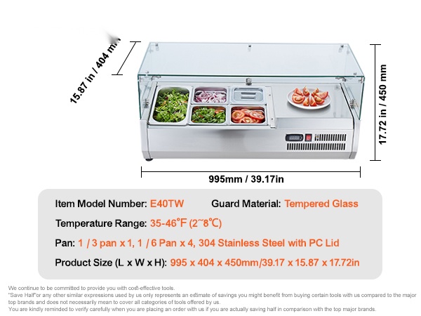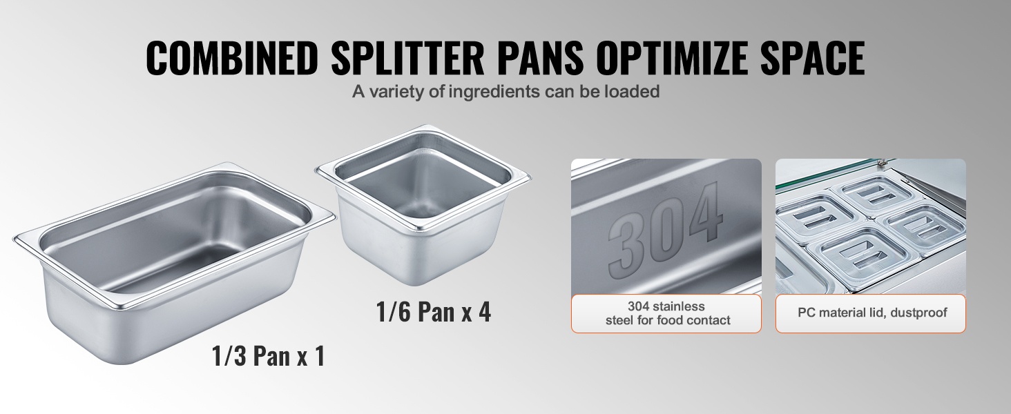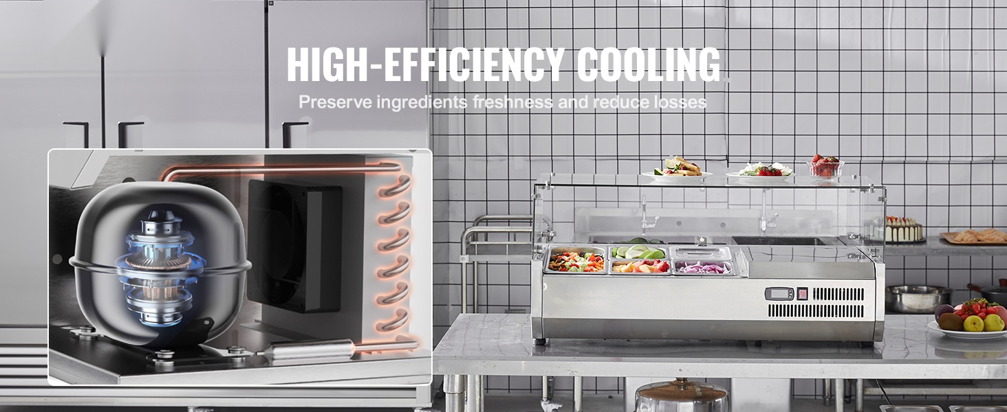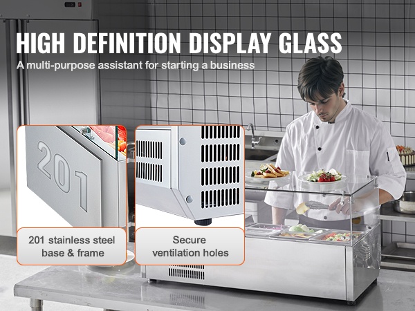 Pöytämallinen kylmäkastikeasema 304 ruostumatonta terästä lasisuoja 3 kpl 1/3-astioita 4 kpl 1/6-astioita