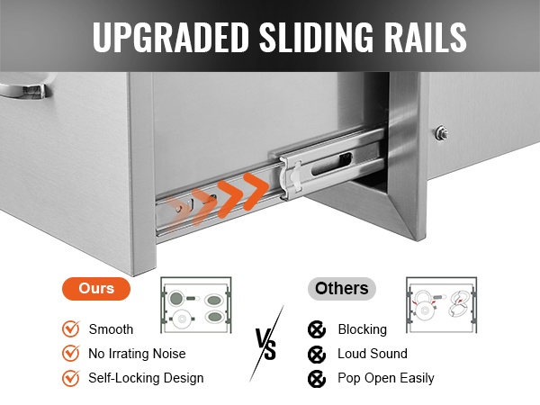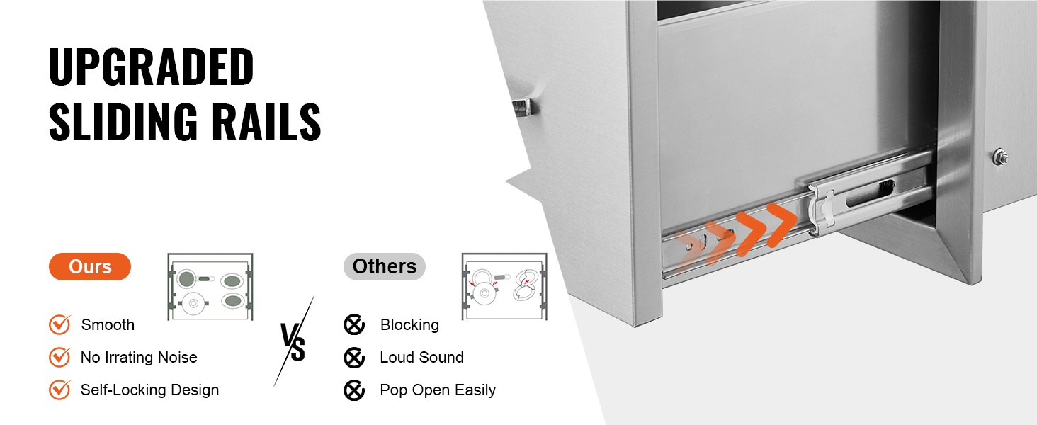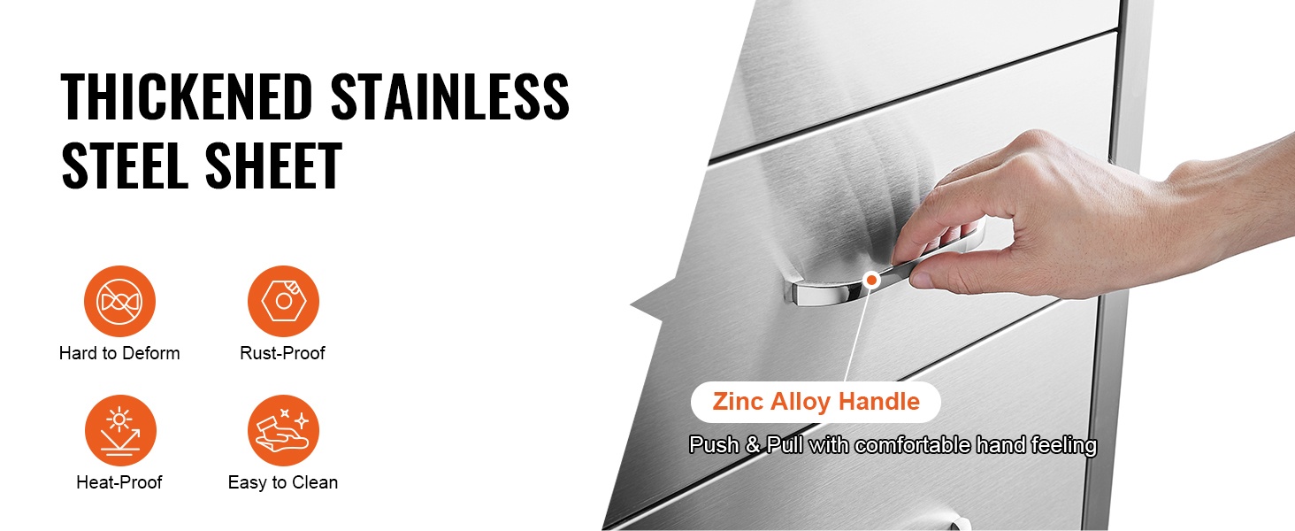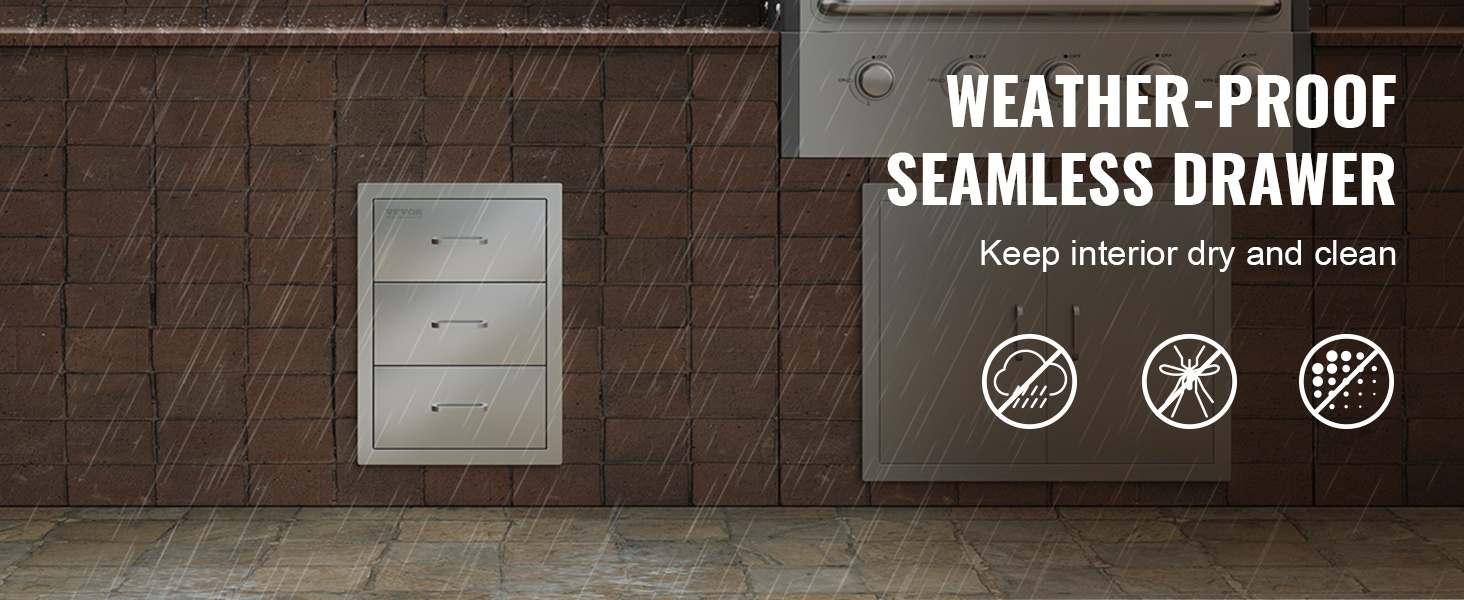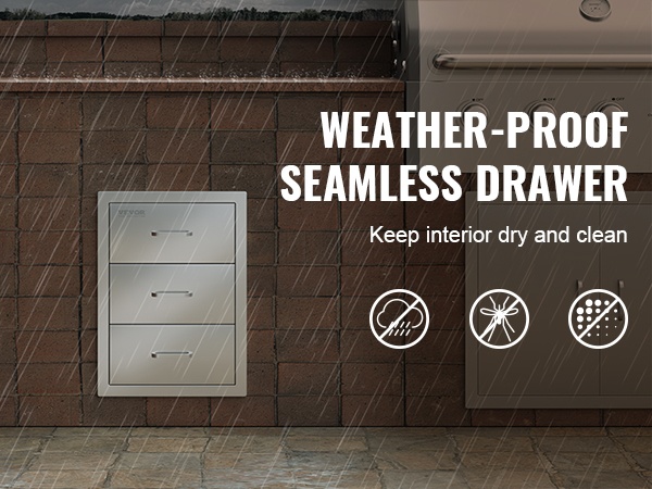 Ulkokeittiön upotettava 3-laatikkoinen ruostumaton teräslaatikosto 470×570×570 mm