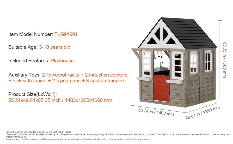 Tämä ulkoleikkimökki on suunniteltu 2–8-vuotiaille lapsille. Se tarjoaa tilan luovuudelle, roolileikeille ja yhteiselle leikille, ja tukee samalla lapsen sosiaalisten taitojen sekä silmä–käsikoordinaation kehittymistä.