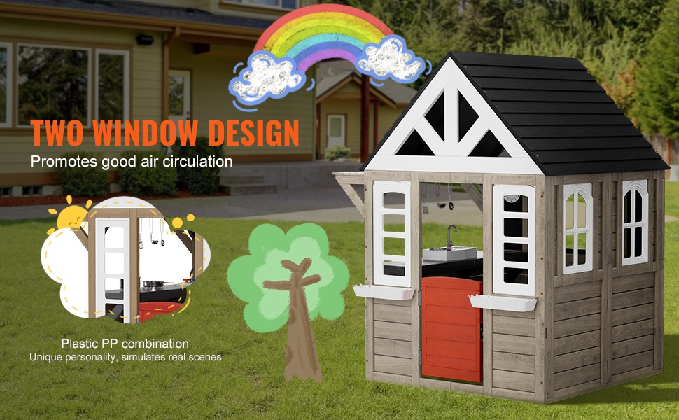 Lapset voivat leikkiä leikkimökissä ystävien kanssa takapihalla, parvekkeella, puistossa tai nurmikolla – se sopii hyvin erilaisiin ulkotiloihin.