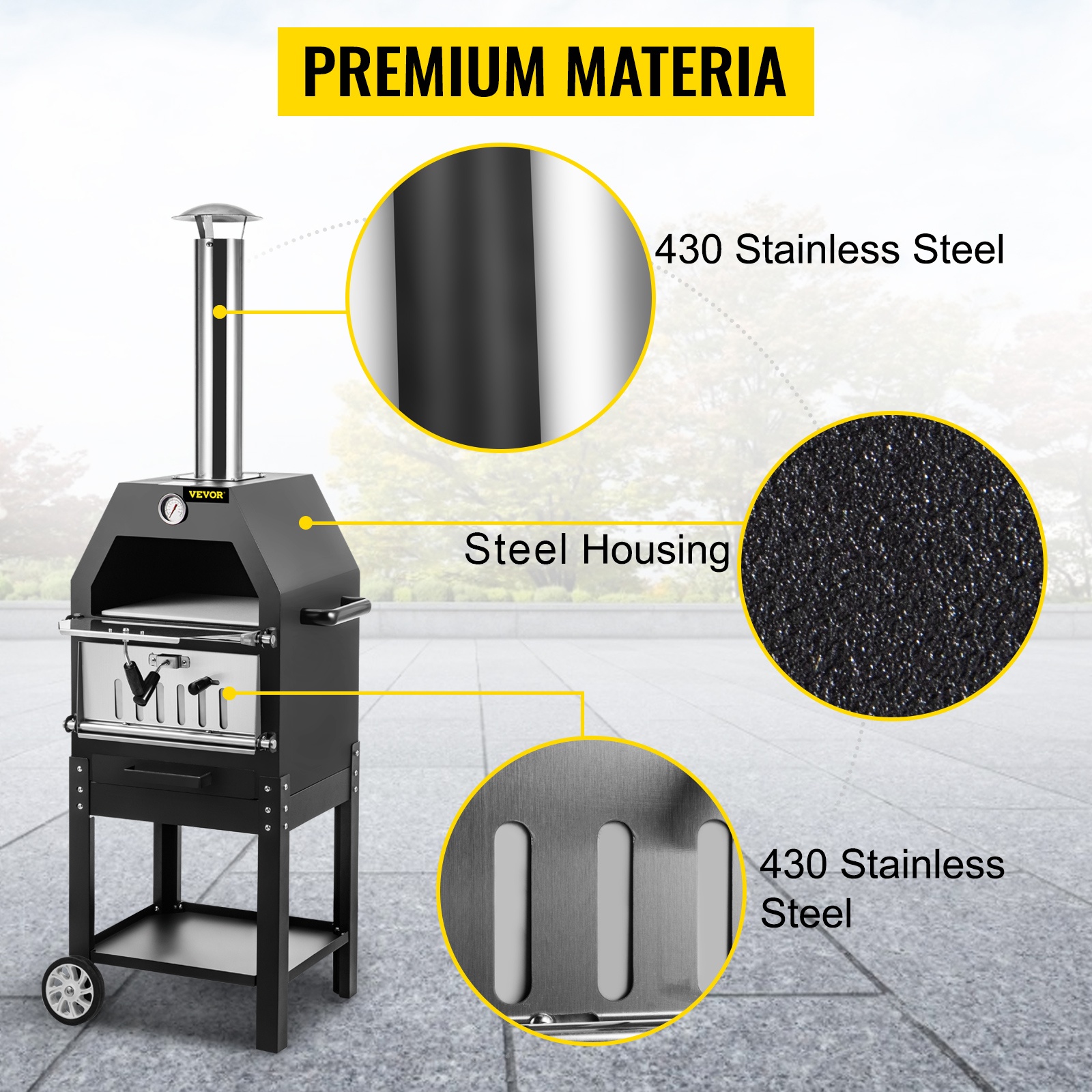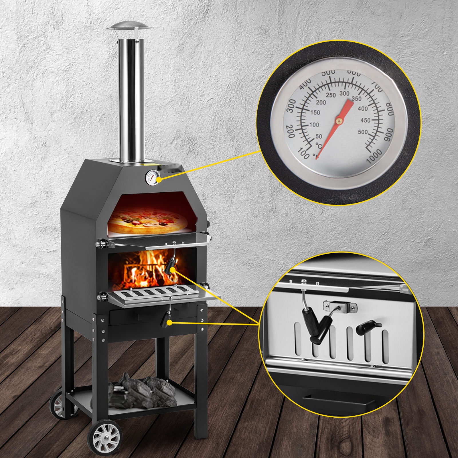 Ulkopizzauuni 12-tuumainen teräs eristetty monipolttoaineinen liikuteltavilla pyörillä