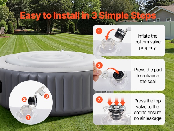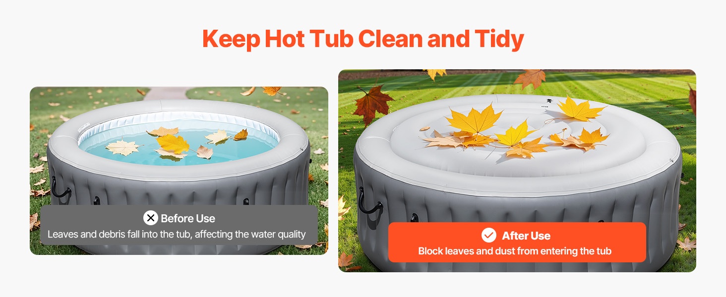 Useat vahvistetut yksityiskohdat auttavat suojusta istumaan tiiviisti altaan päälle. Ilmanpoistoaukko ehkäisee pullistumista, ja jokaisessa kulmassa on säädettävä solki, vedenpitävä vetoketju ja tukevat hihnat, jotka pitävät suojuksen tukevasti paikoillaan myös kovassa tuulessa.