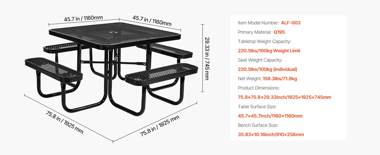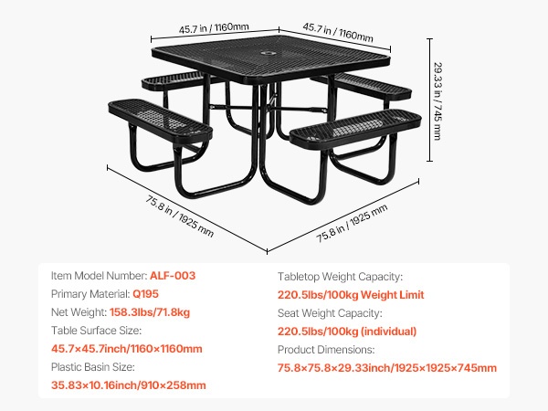 - Pöytälevyn kantavuus: 100 lbs / 45.36 kg