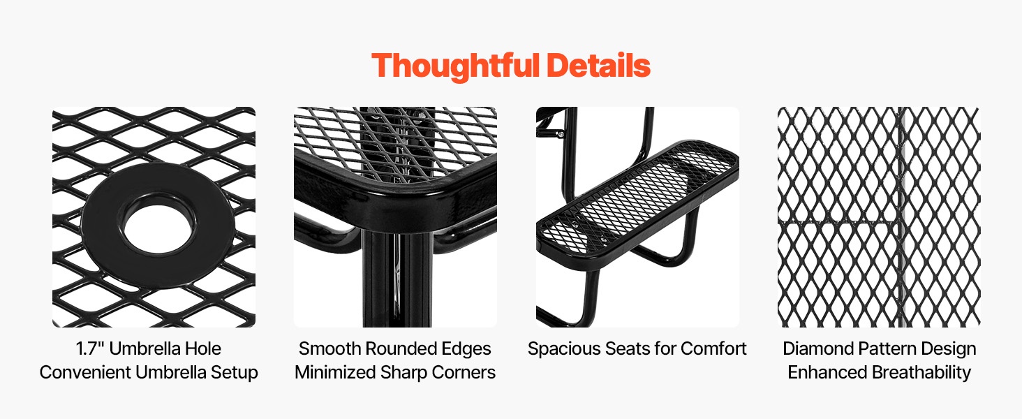 Ergonominen muotoilu, siististi viimeistellyt reunat ja laadukkaat materiaalit lisäävät käyttömukavuutta. Kaluste on suunniteltu tarjoamaan miellyttävän istuma-asennon ja helpon pääsyn pöydän ääreen, mikä tekee siitä käytännöllisen valinnan arjen ulkohetkiin.