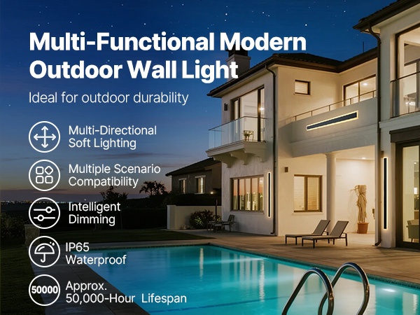 IP65-suojauksen ansiosta ulkoseinävalaisin kestää hyvin kosteutta ja pölyä sekä vaihtelevia sääolosuhteita, kuten sateita ja voimakkaita tuulia. Sisäänrakennettu vesitiivis LED-ohjain sisältää oikosulku- ja ylikuormitussuojan, mikä tukee luotettavaa toimintaa.