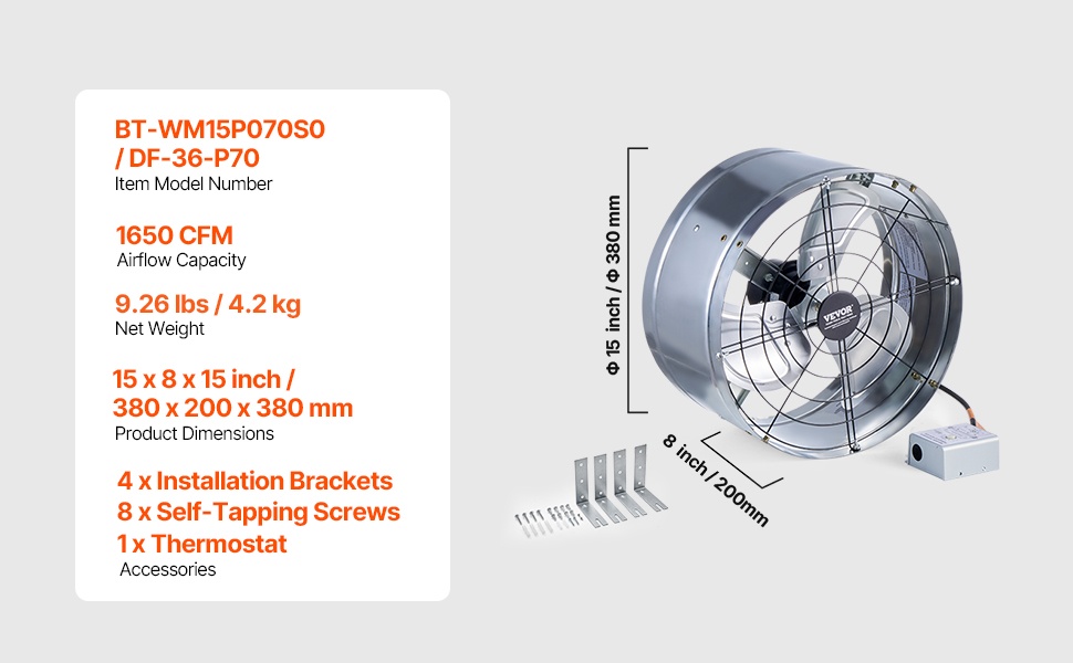 Ullakkopuhallin 14 tuuman aurinkokäyttöinen ilmavirta 1300 CFM säädettävällä termostaatilla