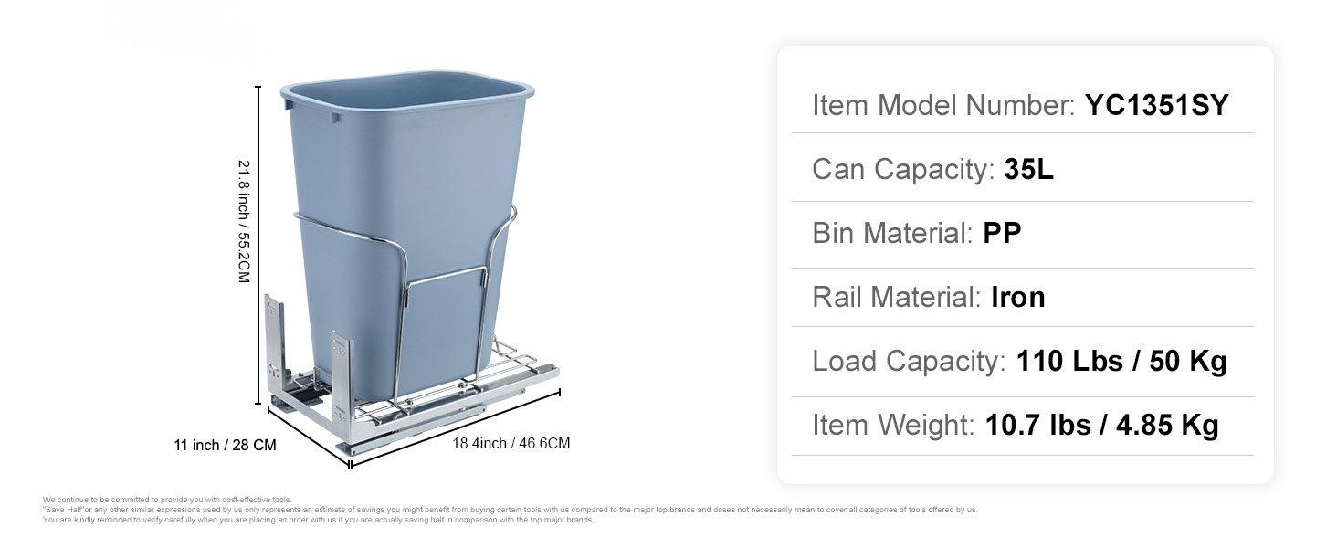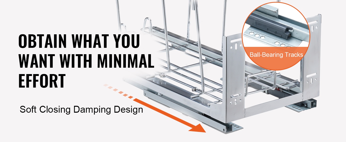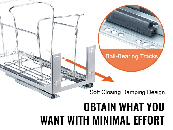 Ulosvedettävä jäteastia-alusta rautarunko 312x410x540 mm alakaappiin kantavuus 16 kg sileät liukukiskot