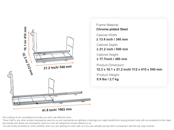 - Kaapin syvyys: ≥21.2 inch / 540 mm