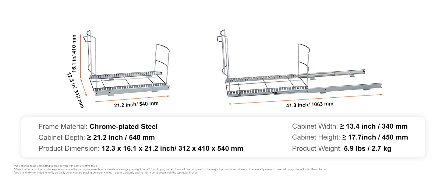 Ulosvedettävä jäteastia-alusta rautarunko 312x410x540 mm alakaappiin kantavuus 16 kg sileät liukukiskot