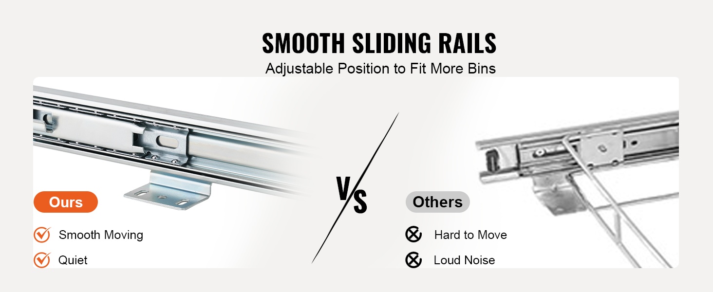 Liukukiskot molemmilla sivuilla varmistavat tasaisen ja hiljaisen liikkeen. Jäteastia-alusta liukuu ulos ja sisään kevyesti ilman nykimistä tai ylimääräistä ääntä.
