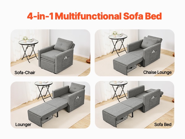 Vuodesohva muuttuu hetkessä nojatuolista vuoteeksi. Voit istua ja lukea, kallistaa selkänojaa elokuvien katseluun tai vetää istuinosan ulos nukkumista varten. Käytännöllinen ja siisti ratkaisu monenlaisiin koteihin.