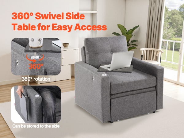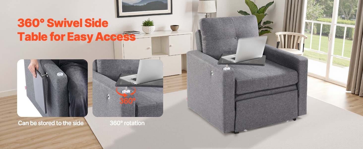 360° kääntyvä pöytätaso sopii kannettavalle tietokoneelle, kirjoittamiseen tai muuhun työskentelyyn ja viihteeseen. Kun pöytää ei tarvita, sen voi siirtää helposti sohvan sivuun, jolloin tila säilyy avarana.
