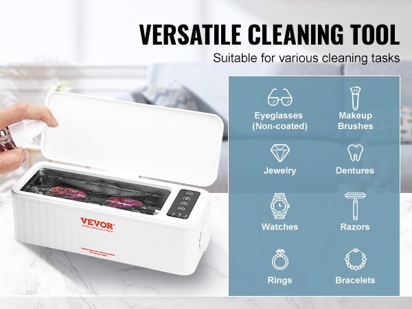 Laite soveltuu monentyyppisten pienten esineiden puhdistukseen, kunhan materiaali kestää ultraäänipesua ja lämmintä vettä. Se auttaa ylläpitämään esineiden ulkonäköä ja pidentämään niiden käyttöikää.