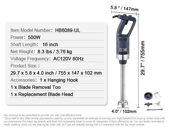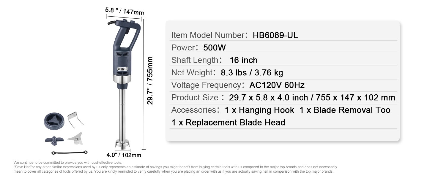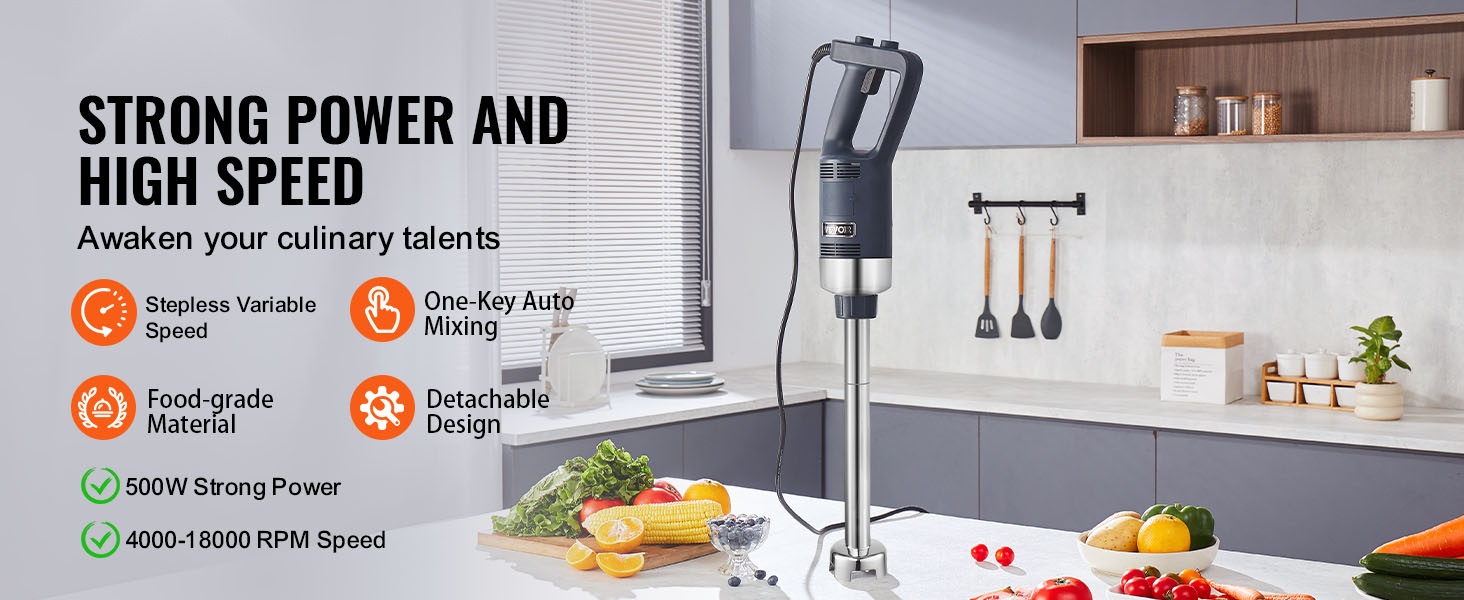 Upposekoitin 750-wattinen 304-ruostumattomat terät säädettävä nopeus ammattikeittiöön