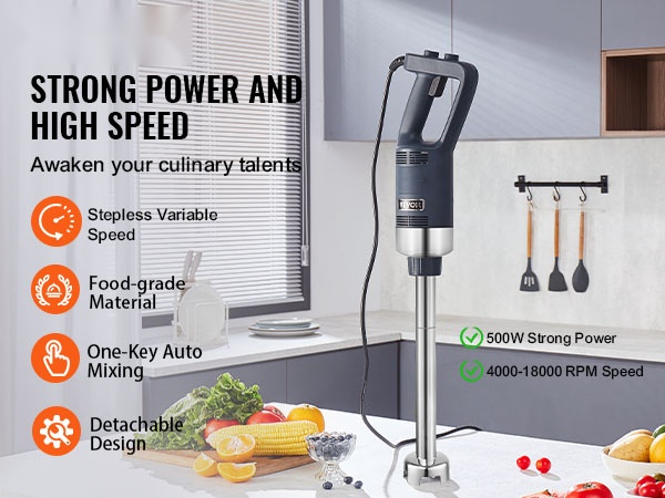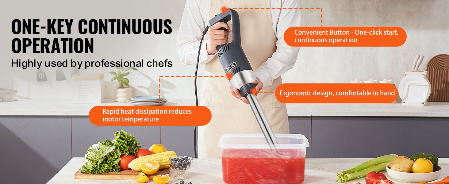 Tämä tehokas upposekoitin sopii keittojen, smoothieiden, soseiden ja vauvanruoan valmistukseen. Voimakas moottori ja säädettävä nopeus tekevät erilaisten ainesosien sekoittamisesta tasaista ja vaivatonta.