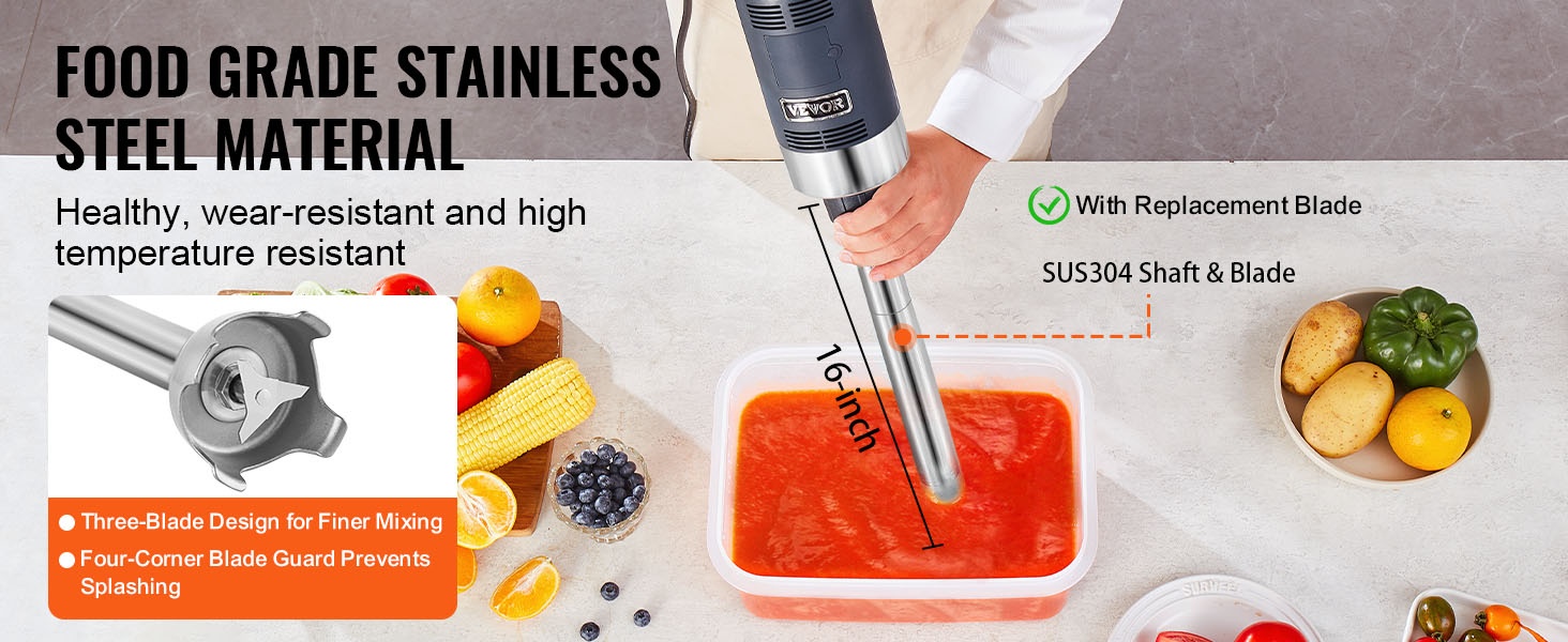 Blenderissä on elintarvikekelpoiset 304-ruostumattomasta teräksestä valmistetut terät, joilla pilkot ja hienonnat ainekset tehokkaasti. Niillä valmistuvat helposti pirtelöt, paksut keitot, kastikkeet ja mehut.