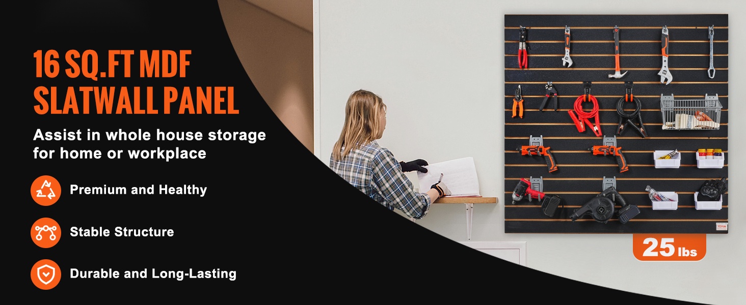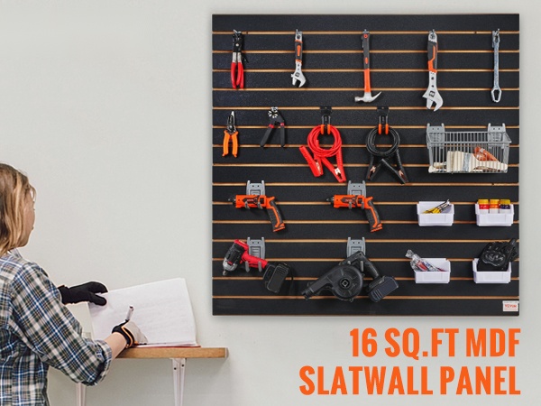 Nämä mustat slatwall-seinäpaneelit auttavat pitämään työkalut, tarvikkeet ja muut tavarat siististi järjestyksessä. Kestävästä MDF-levystä valmistetut paneelit sopivat hyvin autotalliin, varastoon, myymälään ja harrastetilaan.