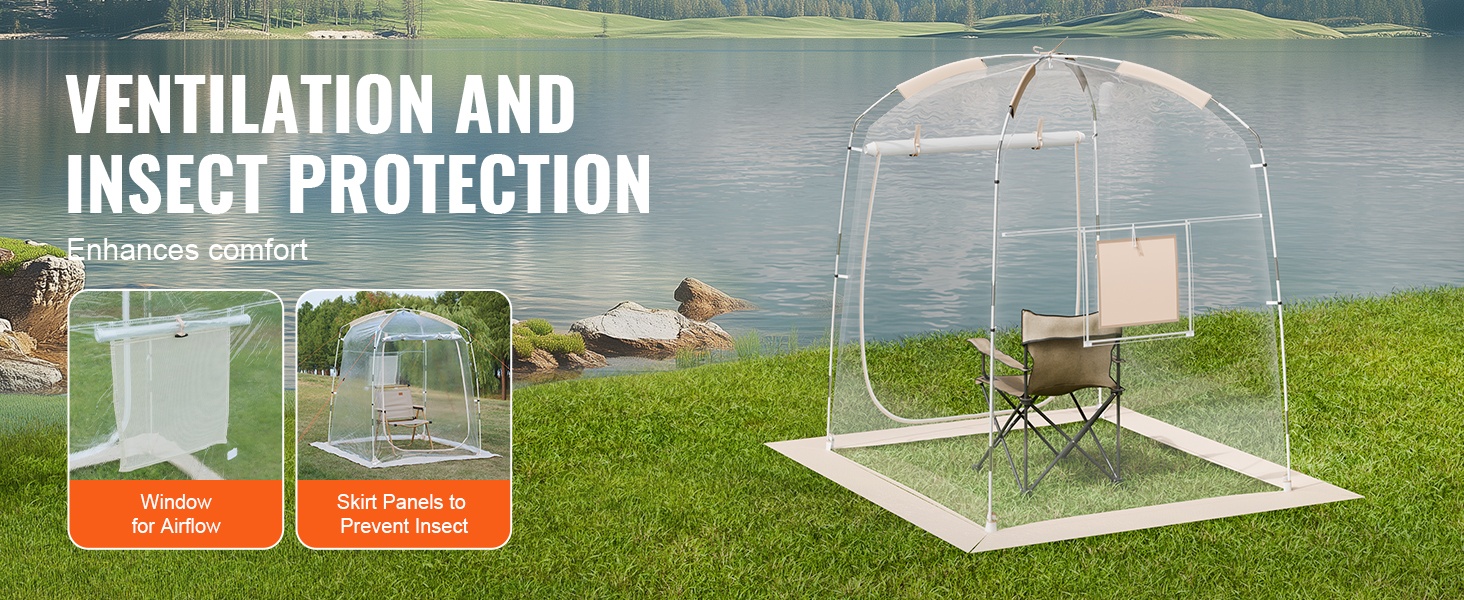 Kaksi sivuikkunaa ja alareunan helmat mahdollistavat hyvän ilmanvaihdon ja auttavat pitämään kärpäset ja muut hyönteiset ulkopuolella. Tämä lisää käyttömukavuutta pitkissäkin tapahtumissa.