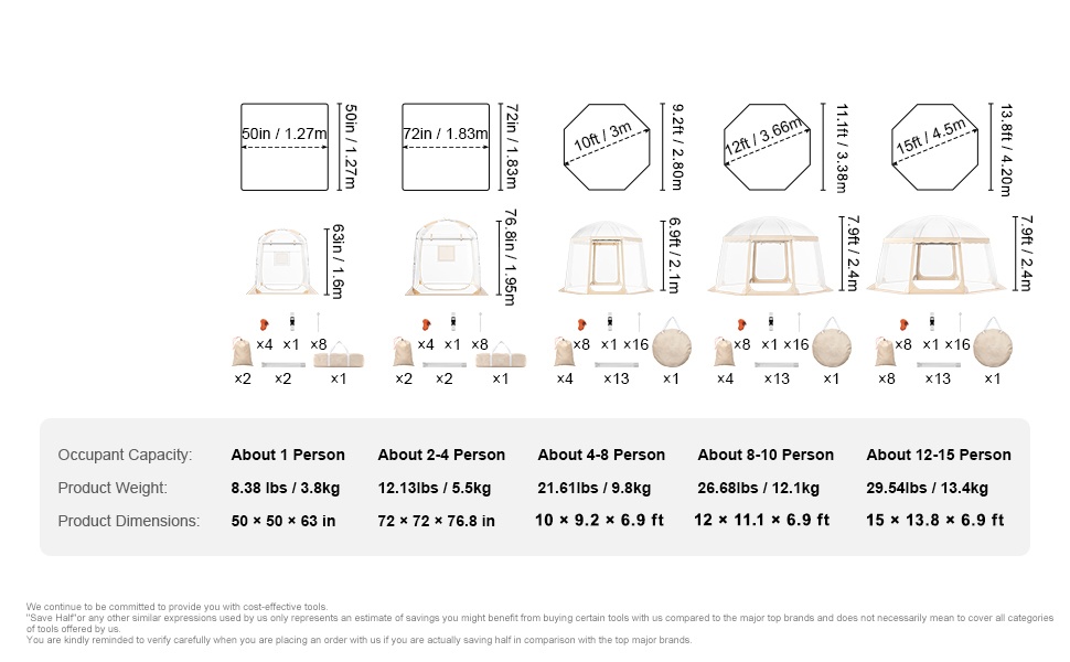 - Tuotteen koko: 12 x 12 x 7.9 ft / 3.66 x 3.66 x 2.4 m