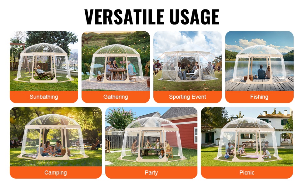 Teltta sopii hyvin esimerkiksi jalkapallo-, softball- ja muiden ulkoilulajien katsomiseen, paraateihin, kokoontumisiin ja juhliin sekä muuhun ulkoiluun, kun tarvitset suojaisan ja selkeän näkyvyyden tarjoavan tilan.