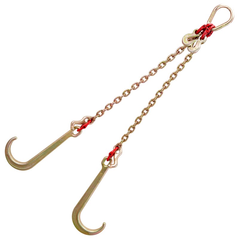 Tämä V-mallinen vetoketju on valmistettu korkealaatuisesta teräksestä, jonka kokonaislujuus on Grade 80. Ketju on varustettu koukuilla, jotka sopivat useisiin eri ajoneuvotyyppeihin esimerkiksi hinaus- ja kuljetuskäytössä.