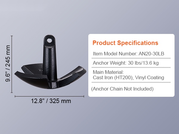 - Ankkurin paino: 30 lbs/13.6 kg, ±3%