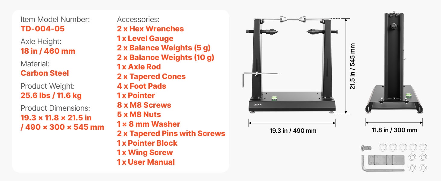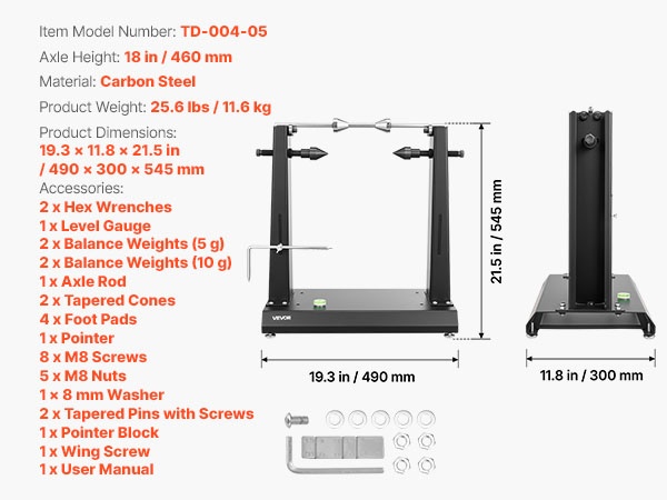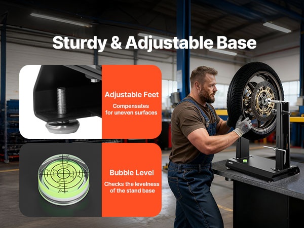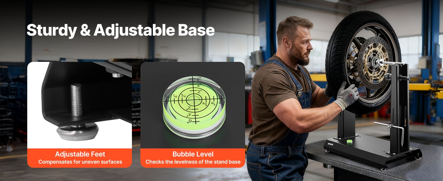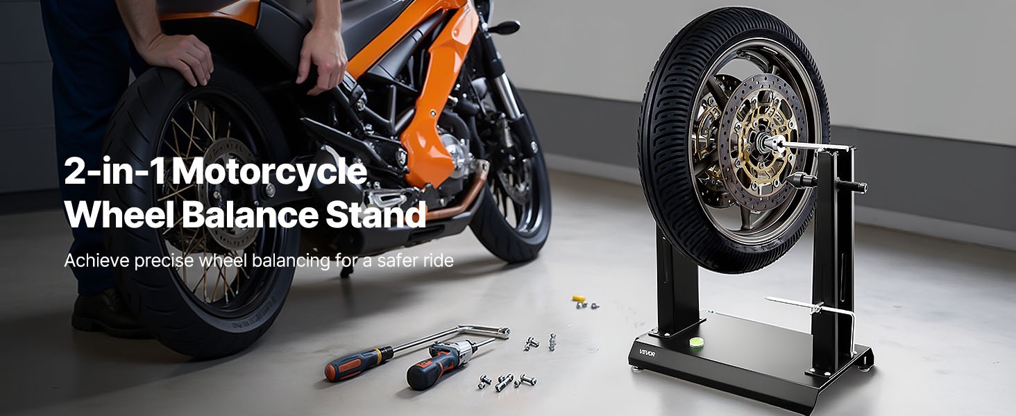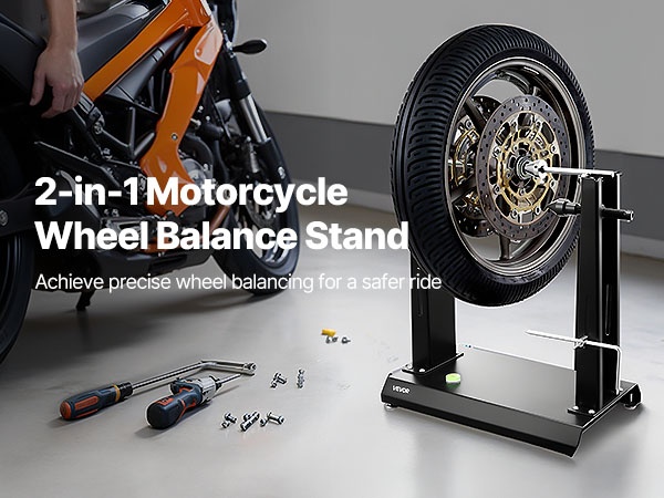 Tämän moottoripyörän ja polkupyörän vanteiden tasapainotus- ja oikaisutelineen avulla teet tarkat, säännölliset rengashuollot ja korjaukset omassa autotallissasi itse. Soveltuu enintään 40 kg painaville renkaille ja jopa 813 mm vanteen halkaisijalle.