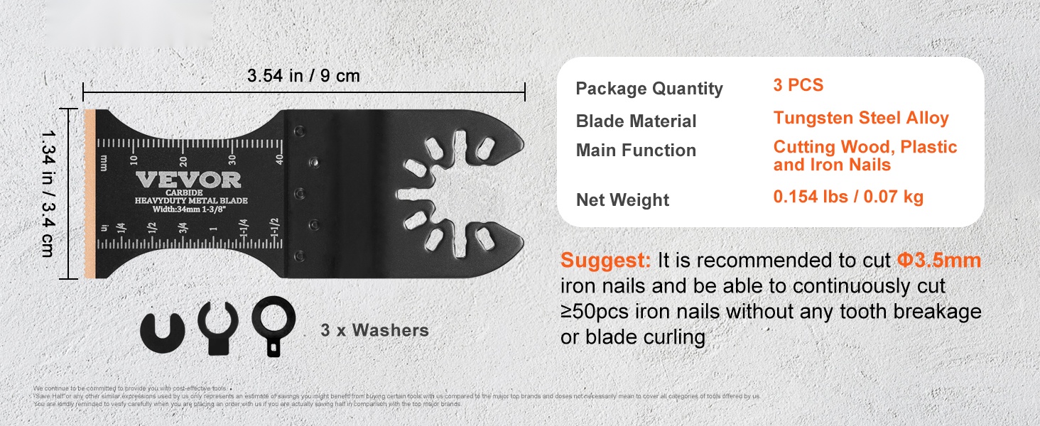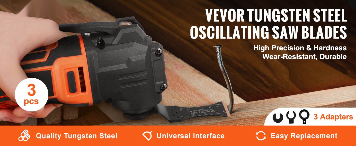 Monitoimityökalun terät on valmistettu seosteräksestä ja hiiliteräksestä (HCS), ja ne on karkaisu korkeassa lämpötilassa parempaa kovuutta ja käyttöikää varten. Tämä varmistaa tasaisen ja tehokkaan leikkauksen pitkäaikaisessa käytössä.