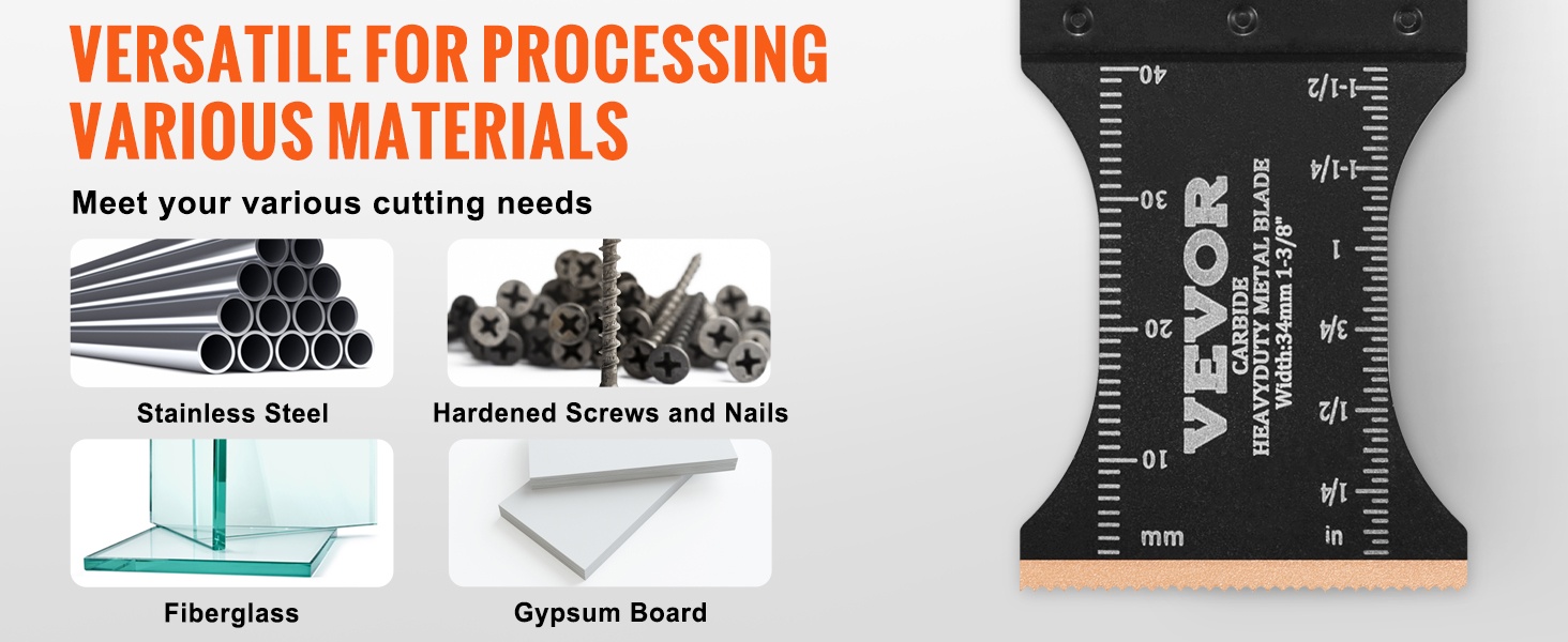Värähtelevän monitoimityökalun terät soveltuvat erilaisten kotikorjaus- ja tee-se-itse -projektien tarpeisiin. Niillä voidaan työstää esimerkiksi täyspuuta, alumiinia, komposiittilevyä, kipsilevyä, korkkilevyä ja muovilevyä.
