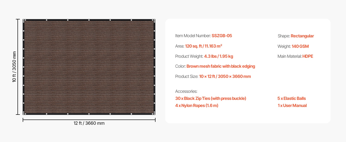 Tämä 90 %:n varjostuksen tarjoava kangas luo miellyttävän ja suojaisan tilan terassille, pihalle tai parvekkeelle. 140 GSM:n tiivis HDPE-materiaali suojaa auringolta, on hengittävä eikä päästä lämpöä liikaa kertymään tilaan.
