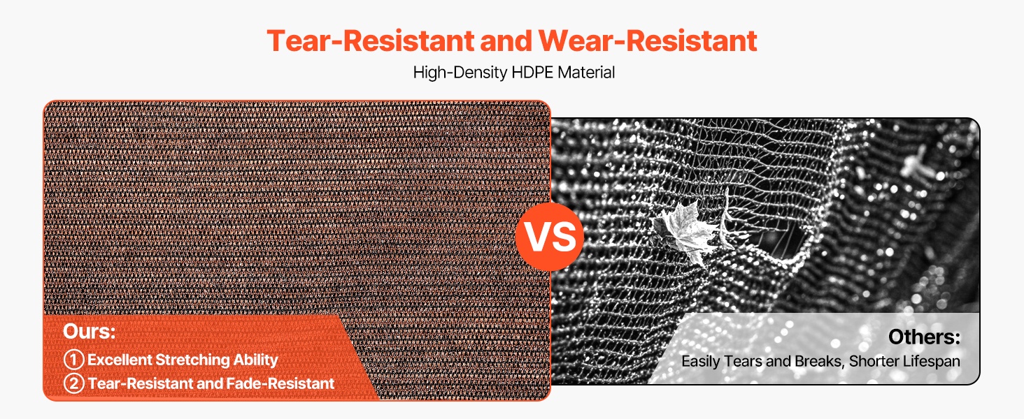 140 GSM:n korkeatiheyksinen HDPE-kangas on repeämistä ja hankautumista kestävää. Materiaali on hengittävää ja läpäisee ilmaa, mutta suodattaa suurimman osan auringonpaisteesta. Kangas on suunniteltu kestämään ulkokäytössä ja vähentämään auringonvalon aiheuttamaa haalistumista, jotta ulkonäkö säilyy siistinä pitkään.