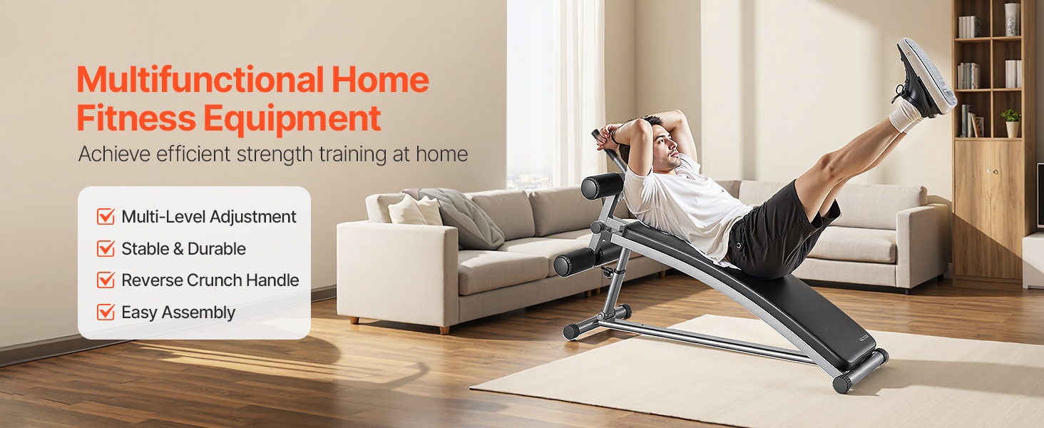 Tämä vatsalihaspenkki tarjoaa monipuolisen alustan koko kehon harjoitteluun kotona. Kaareva selkänoja, säädettävä korkeus ja jalkatuki sekä käänteisiin rutistuksiin tarkoitettu kahva tukevat monia erilaisia liikkeitä ja treenitasoja.