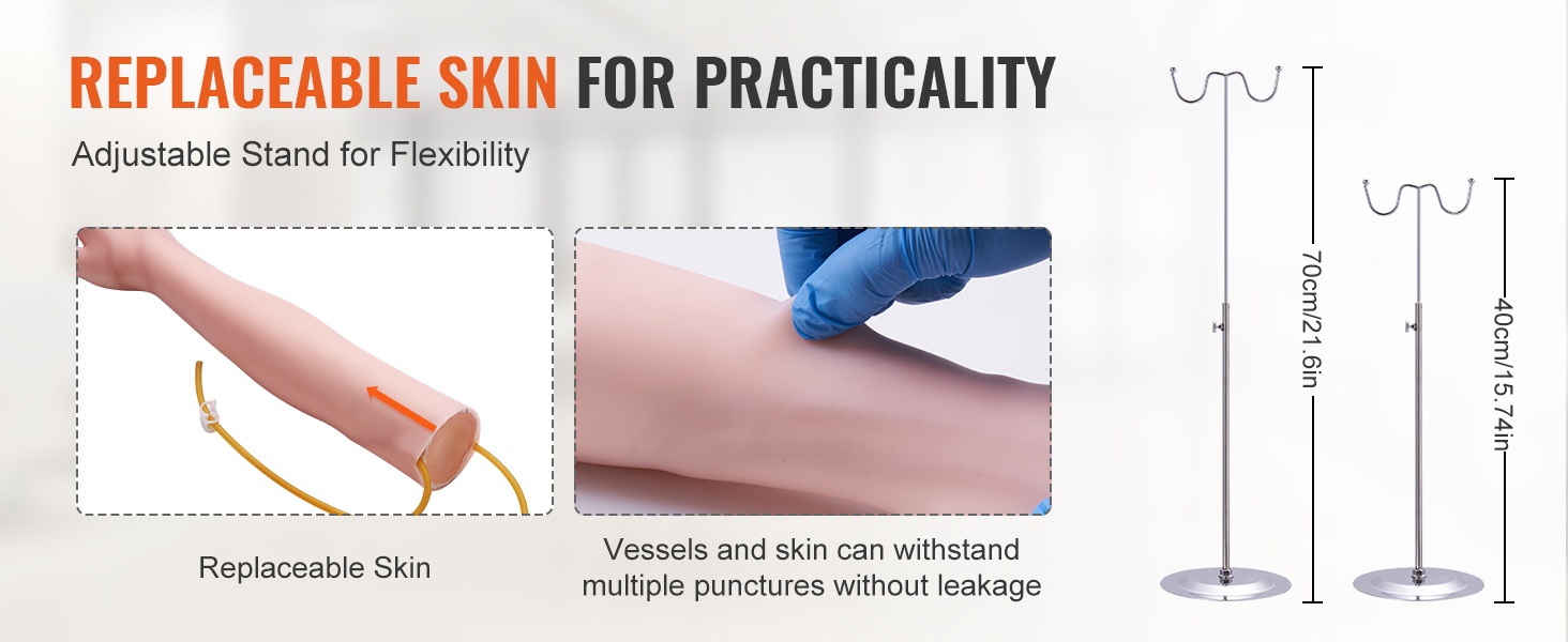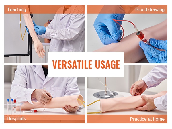 Malli soveltuu verinäytteenotto-, venipunktio- ja pistotekniikoiden harjoitteluun. Se on hyödyllinen väline hoitoalan opiskelijoille, harjoittelijoille ja terveydenhuollon ammattilaisille, jotka haluavat ylläpitää ja kehittää IV-taitojaan turvallisessa ympäristössä.