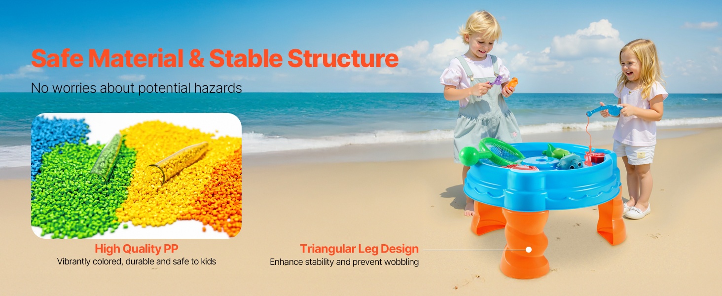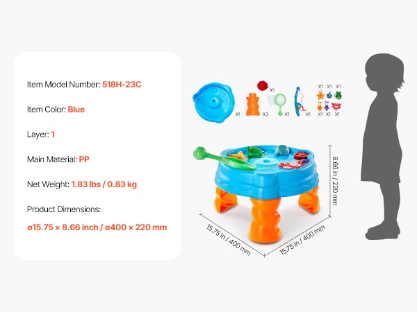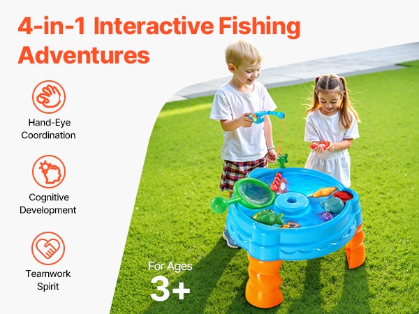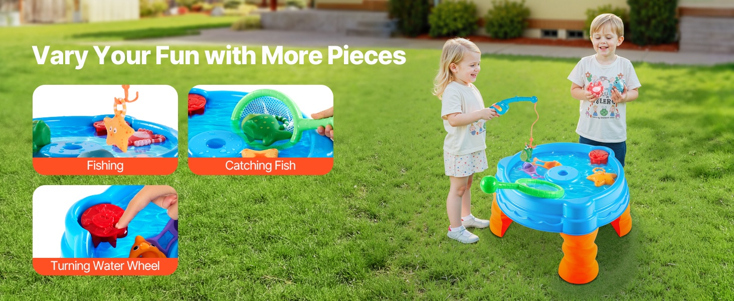 Luo lapsille oma pieni vesimaailma. Vesileikkipöytä sisältää yhteensä 39 kpl erilaisia lisävarusteita, joiden avulla lapset voivat rakentaa omia vesireittejä, ohjata veneitä porttien läpi, harjoitella lastaus- ja purkutoimintoja sekä leikkiä erilaisia roolileikkejä virtaavan veden parissa.