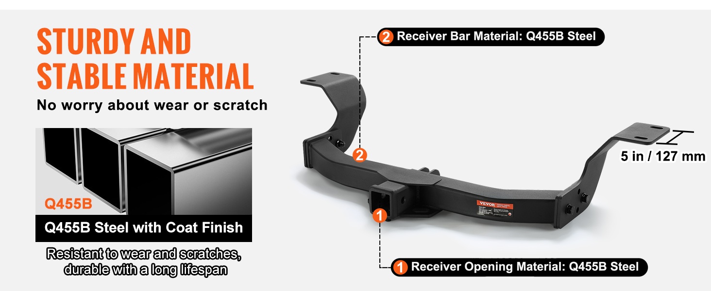 Vetokoukku on valmistettu lujasta ja kulutusta kestävästä Q455B-teräsputkirungosta, joka on suunniteltu pitkäaikaiseen käyttöön.