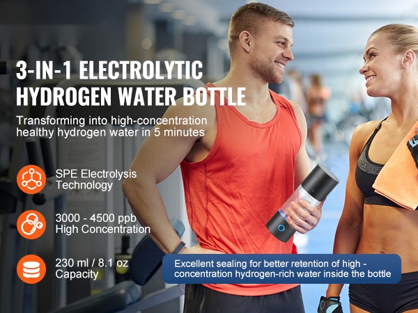 Tämä vetyvesipullo tuottaa noin 3000–4500 ppb vetyä vain noin 5 minuutissa. Vedyrikas vesi auttaa suojaamaan kehoa hapettumiselta ja tukee hyvinvointia säännöllisessä käytössä.