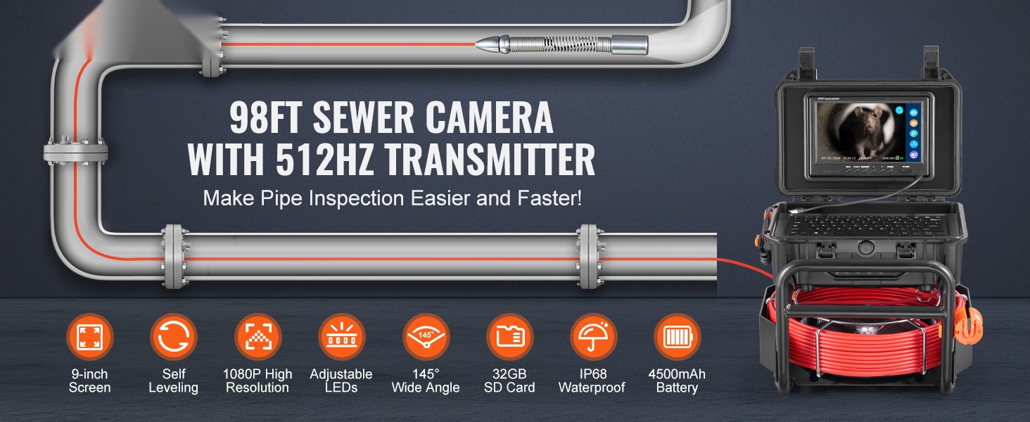 Tämä 50 m viemärikamera helpottaa ja nopeuttaa viemäri-, putki- ja savuhormien tarkastuksia. 4.3-tuumainen värillinen LCD-näyttö, 6 säädettävää LED-valoa ja suuri 8500mAh akku tarjoavat selkeän kuvan ja pitkän käyttöajan myös haastavissa kohteissa.