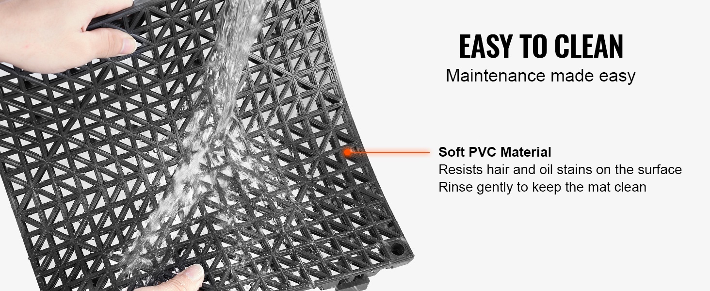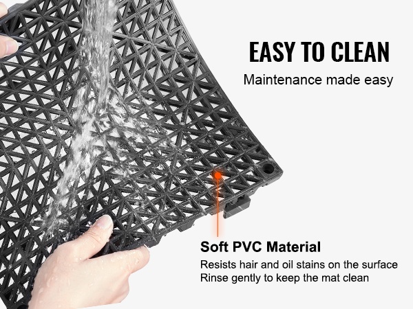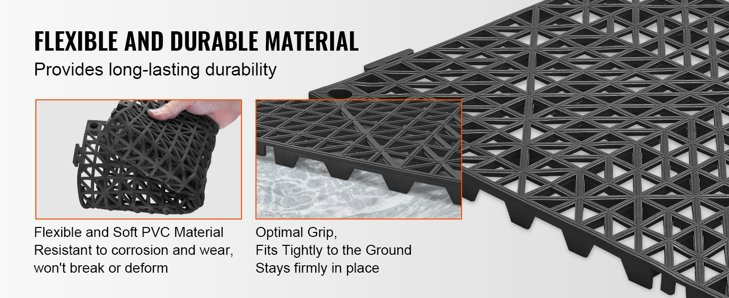 Laadukkaasta PVC-materiaalista valmistetut viemäröintilaatat ovat joustavia ja kestävät hyvin kulutusta sekä vääntymistä. Laattojen läpi menevät viemäröintiaukot parantavat pitoa ja auttavat pitämään matot tukevasti paikoillaan.
